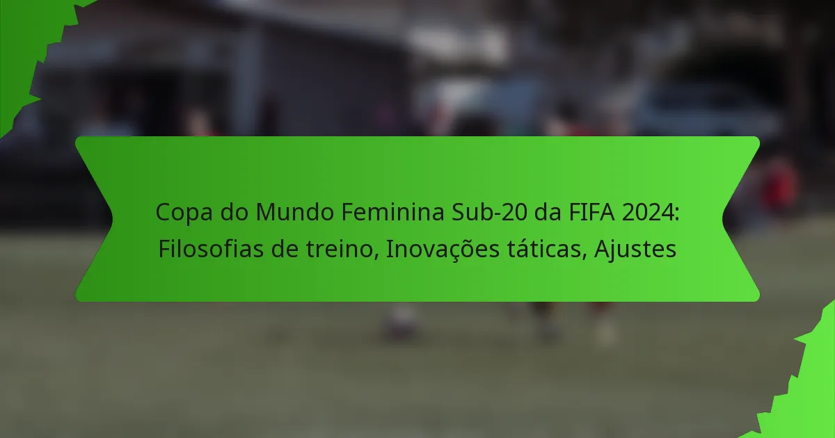 A Copa do Mundo Feminina Sub-20 da FIFA 2024 apresenta uma combinação dinâmica de filosofias de treino que priorizam o desenvolvimento centrado no jogador e a flexibilidade tática. À medida que os treinadores adotam estratégias inovadoras, eles se concentram em melhorar tanto o desempenho da equipa quanto o crescimento individual, adaptando-se às exigências em evolução do jogo. Este torneio destaca a importância dos ajustes durante o jogo e da tomada de decisões baseada em dados, refletindo um compromisso em capacitar jovens atletas no palco global.