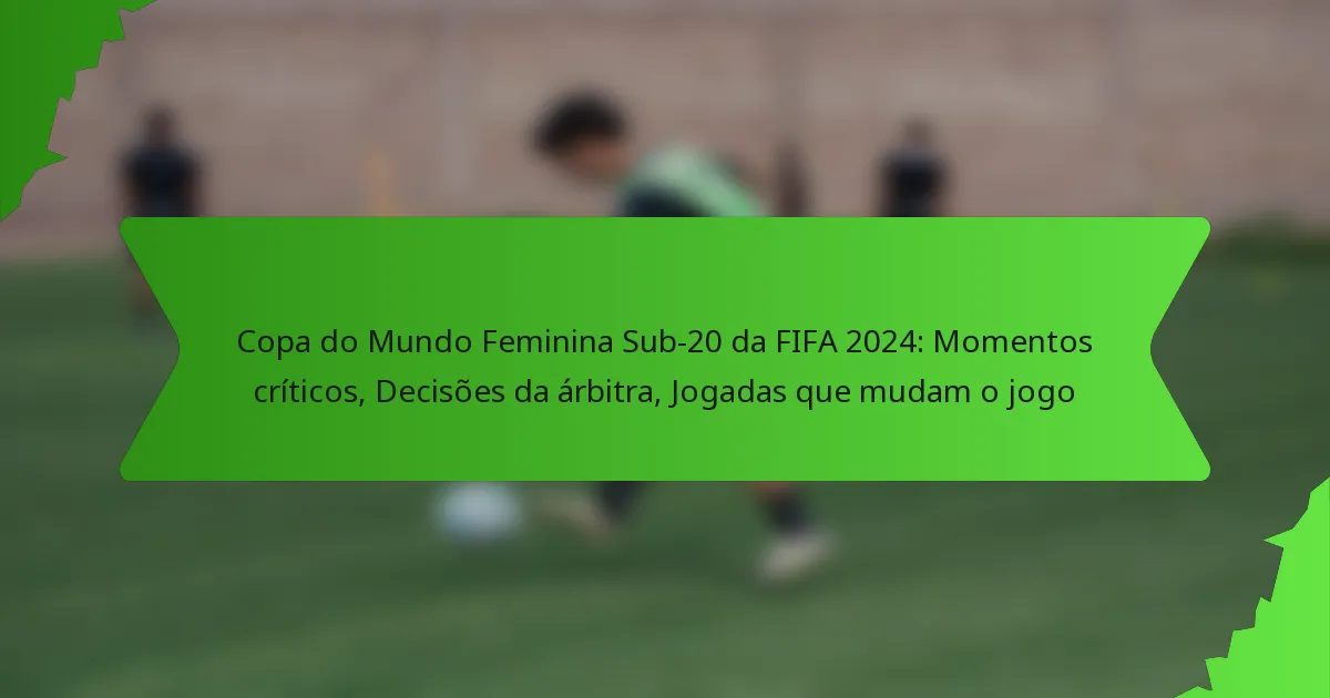 A Copa do Mundo Feminina Sub-20 da FIFA 2024 apresentou vários momentos pivotais que influenciaram significativamente os resultados dos jogos. Jogadas chave, decisões dos árbitros e mudanças táticas moldaram o torneio, destacando a importância da estratégia e da execução das jogadoras em jogos de alta importância.