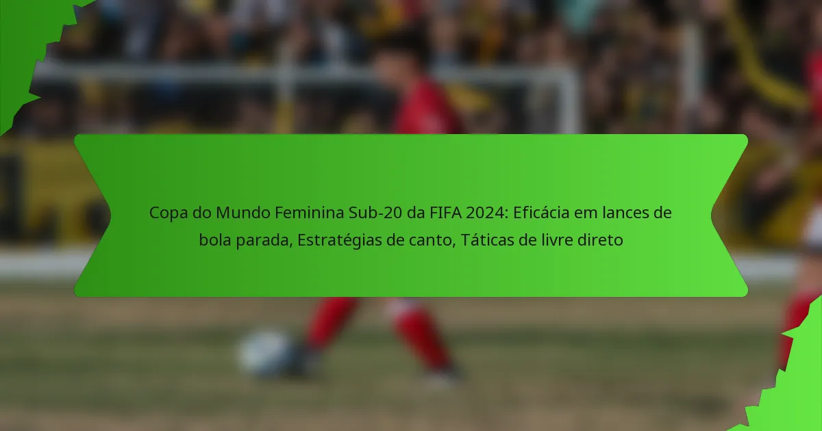 A Copa do Mundo Feminina Sub-20 da FIFA 2024 irá destacar a importância da eficácia em lances de bola parada, particularmente através de estratégias de canto e táticas de livre. As equipas irão concentrar-se em otimizar as suas abordagens a estes momentos críticos, analisando tipos de entrega e posicionamento dos jogadores para aumentar o seu potencial de golo. Dominar estes elementos pode ser decisivo na determinação dos resultados dos jogos, tornando-os componentes vitais da estratégia global de cada equipa.
